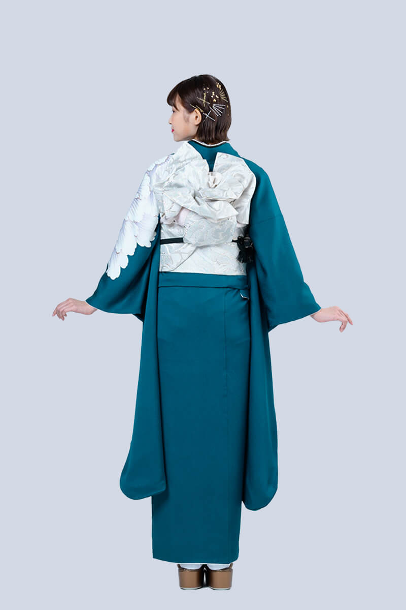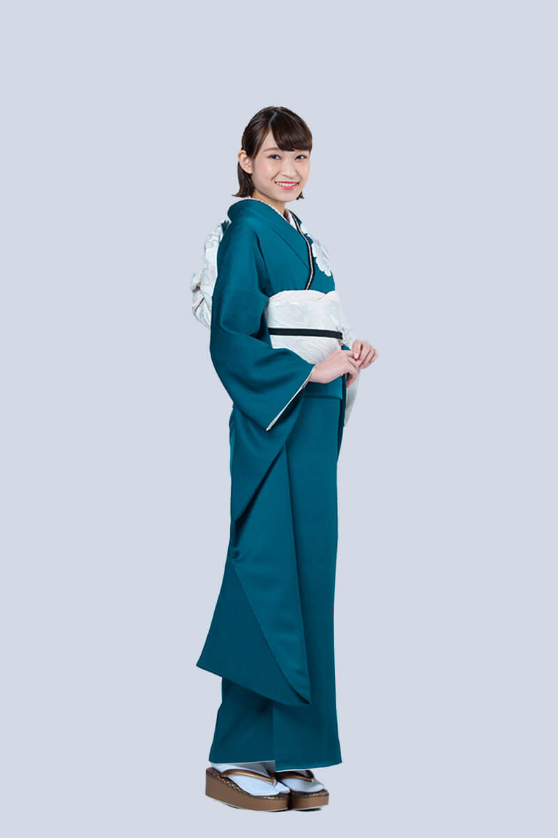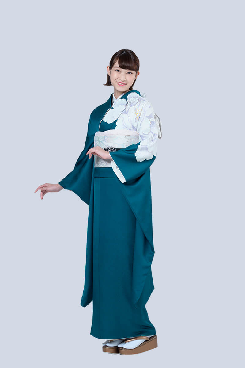 - 【MK-1304】深い青に淡い牡丹の花が印象的な振袖
