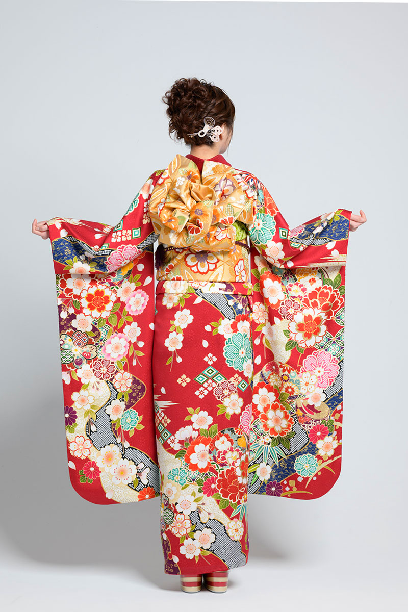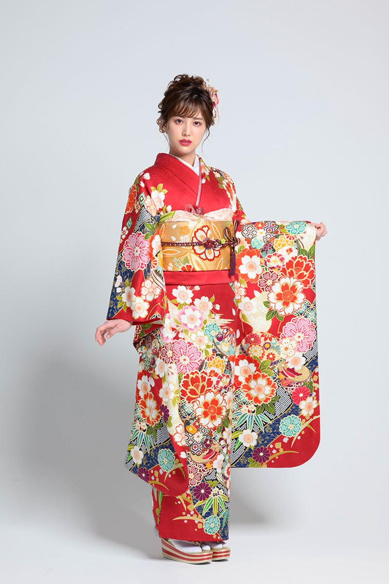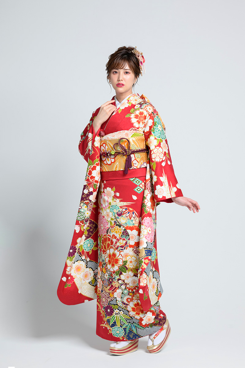 美人度高まる大人な赤地。王道コーデでノーブルに。