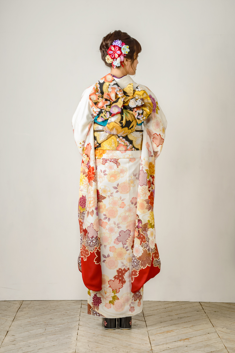 ミルキーカラーに朱赤を組み合わせた振袖【MK-801】
