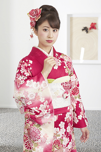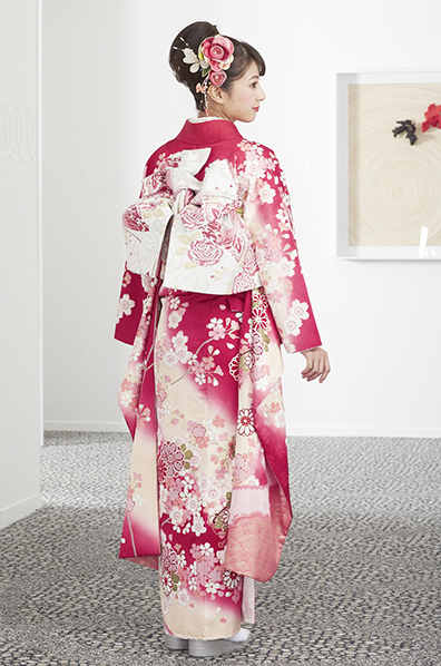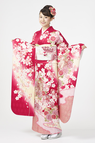 - ピンクレッド地に桜御所車柄振袖【MK-707】