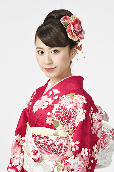【まるやま・京彩グループオリジナル振袖】 会場がパッと華やぐ女の子らしい色合い。 ピンクと赤が入り混じった甘酸っぱい絶妙な色合いが個性を楽しめる1枚に。 桜をまとった御所車が優美な爽やかさを運ぶ振袖です。