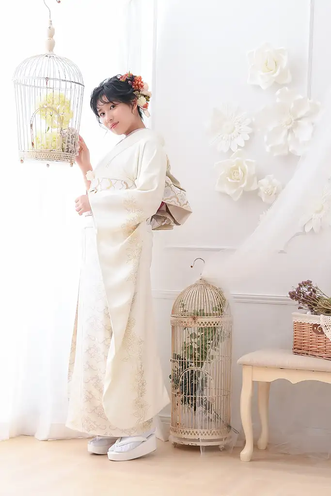 【シンプル&ガーリー振袖スタイル❝Coco fleur❞】 《オンディーヌオリジナル振袖》 パールのきらめきを味方に、キラキラ輝く大人へ