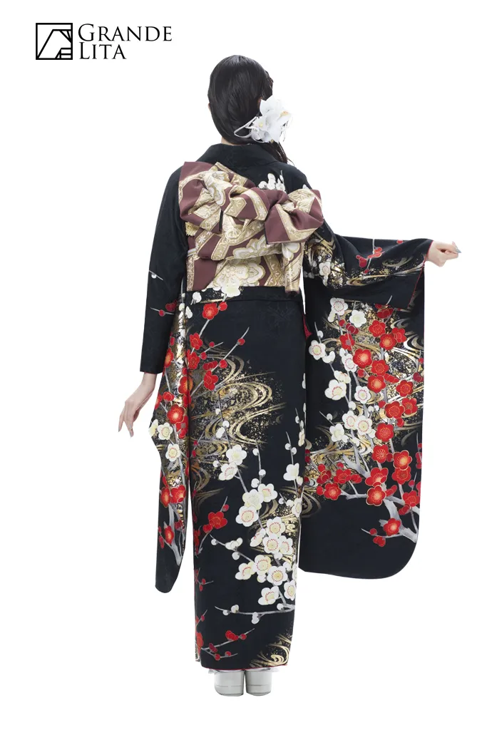 《オンディーヌオリジナル振袖》 芯の強さを持つ紅白梅に祝福されさらなる旅立ちを彩って。