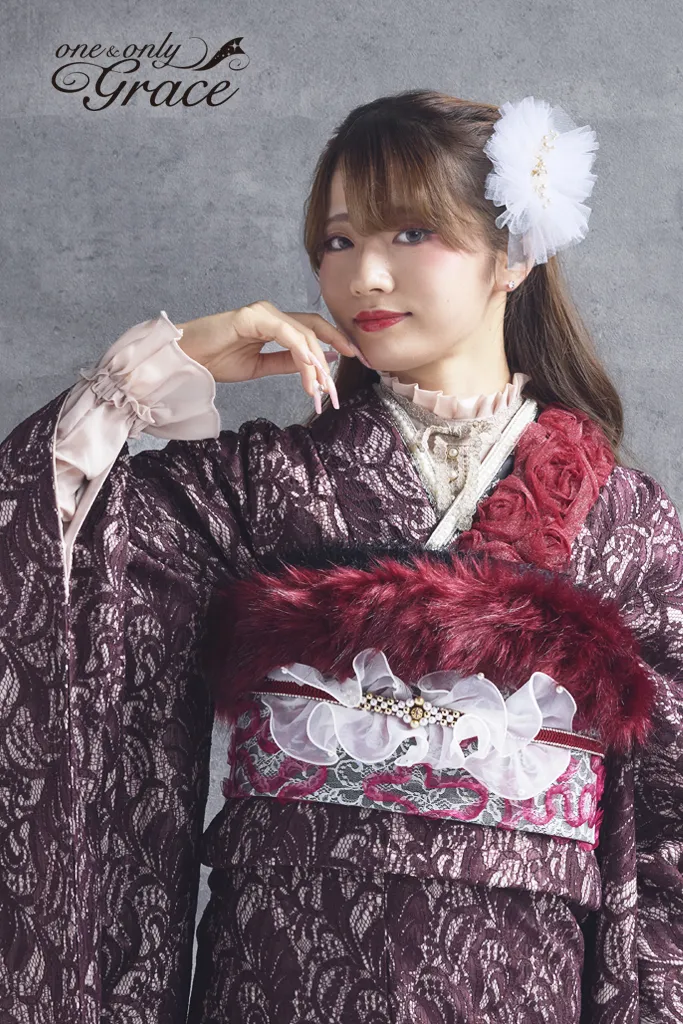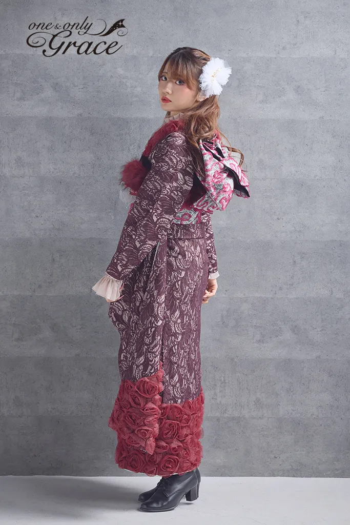 【オンディーヌオリジナル振袖】唐草レースと100輪以上の薔薇が魅せる、大人のドラマティック・スタイル。 銀糸が織り込まれたワインレッドの唐草レースに、立体的な薔薇で圧倒的なボリューム感をプラス。シックな大人っぽさの中に情熱的な可愛らしさを忍ばせた、唯一無二の華やかさを誇る一着。 《通常サイズ フリーサイズ》 ※特殊サイズにつきましては+30,000円追加料金が発生いたします。