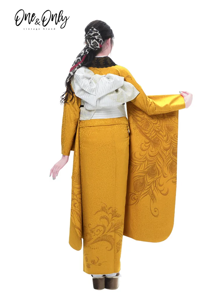 《オンディーヌオリジナル振袖》 芥子の色無地に黒レース衿をレイヤード!小物で個性を楽しむ新時代の着こなし。