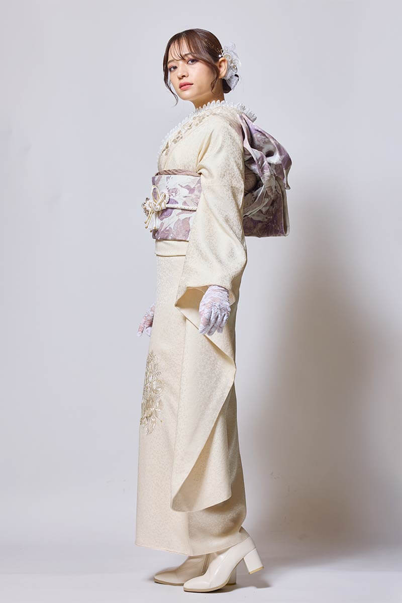 - 【MK-1503】クリーム色の上品な刺繍が映える華やか振袖