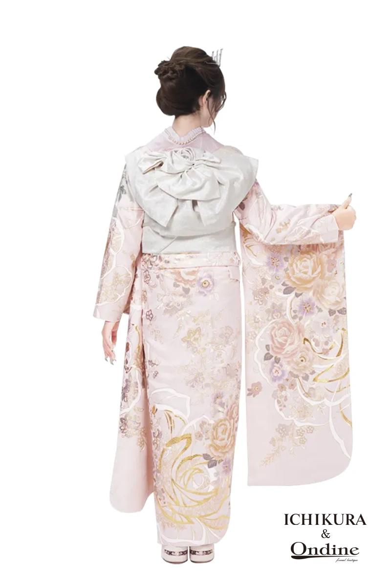 【ICHIKURA&オンディーヌ限定振袖】 ペールトーン地にラインストーン、ドレスのようなプリンセスルック。わが道を進む姫は、誰よりも気品を漂わせて。