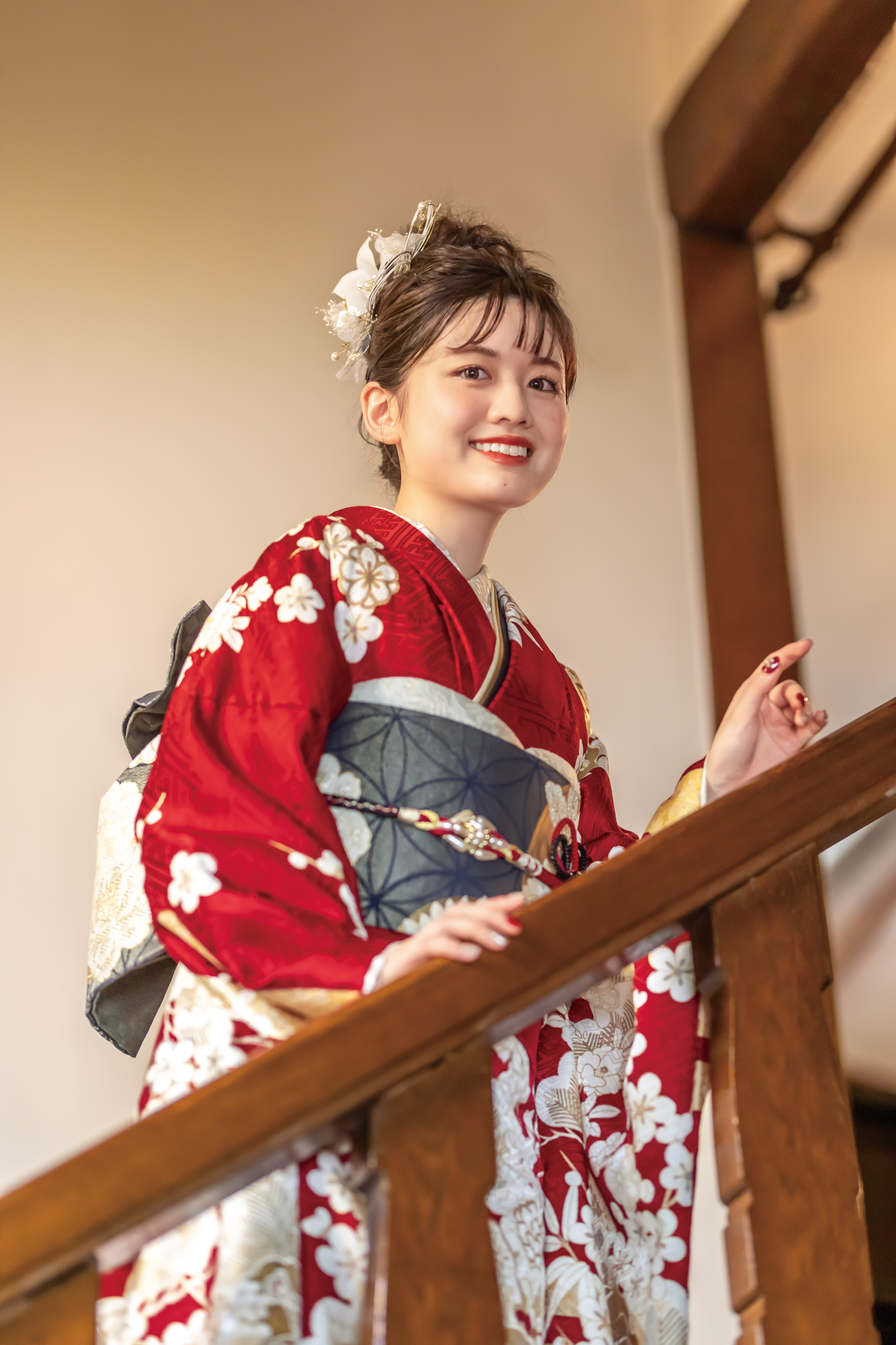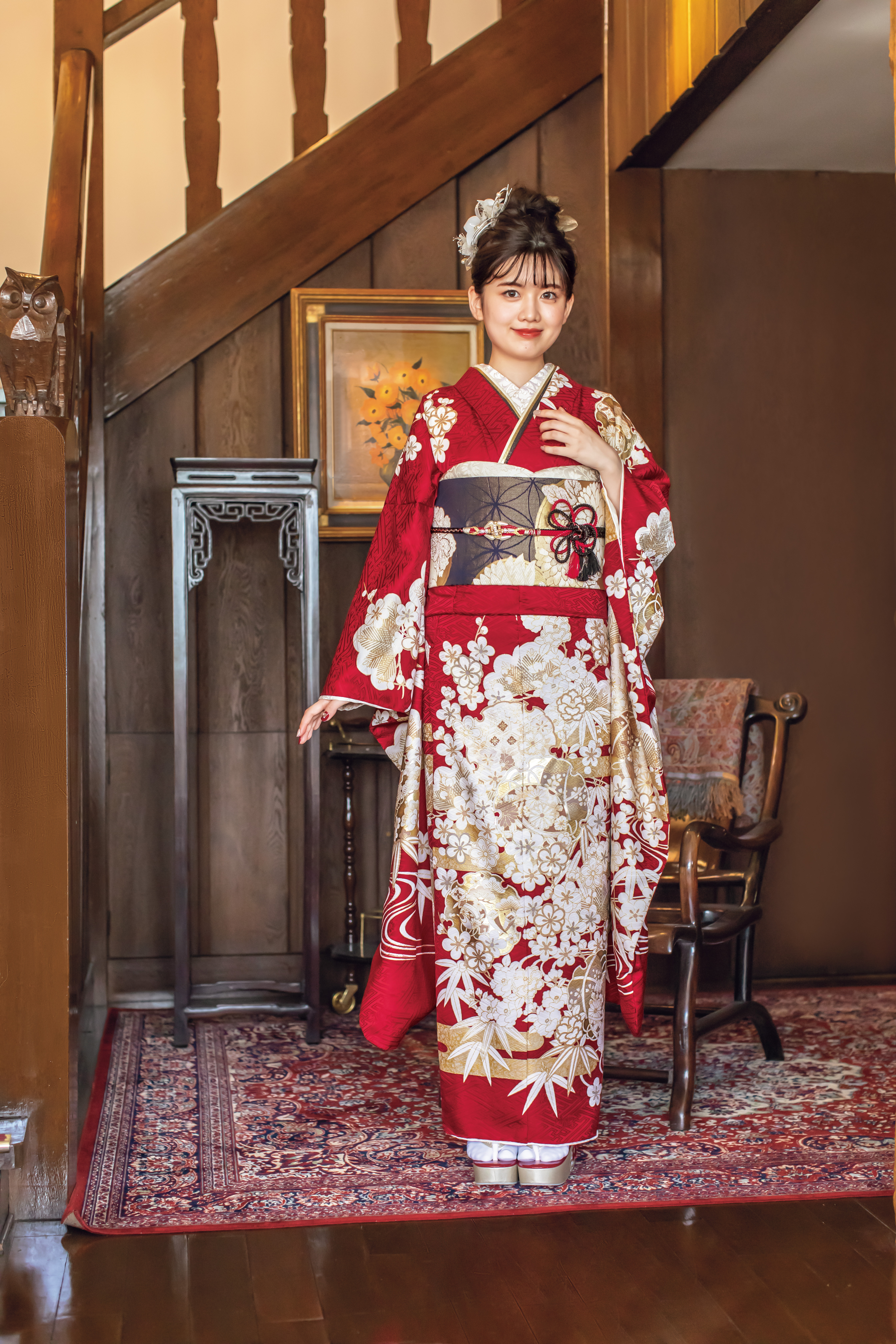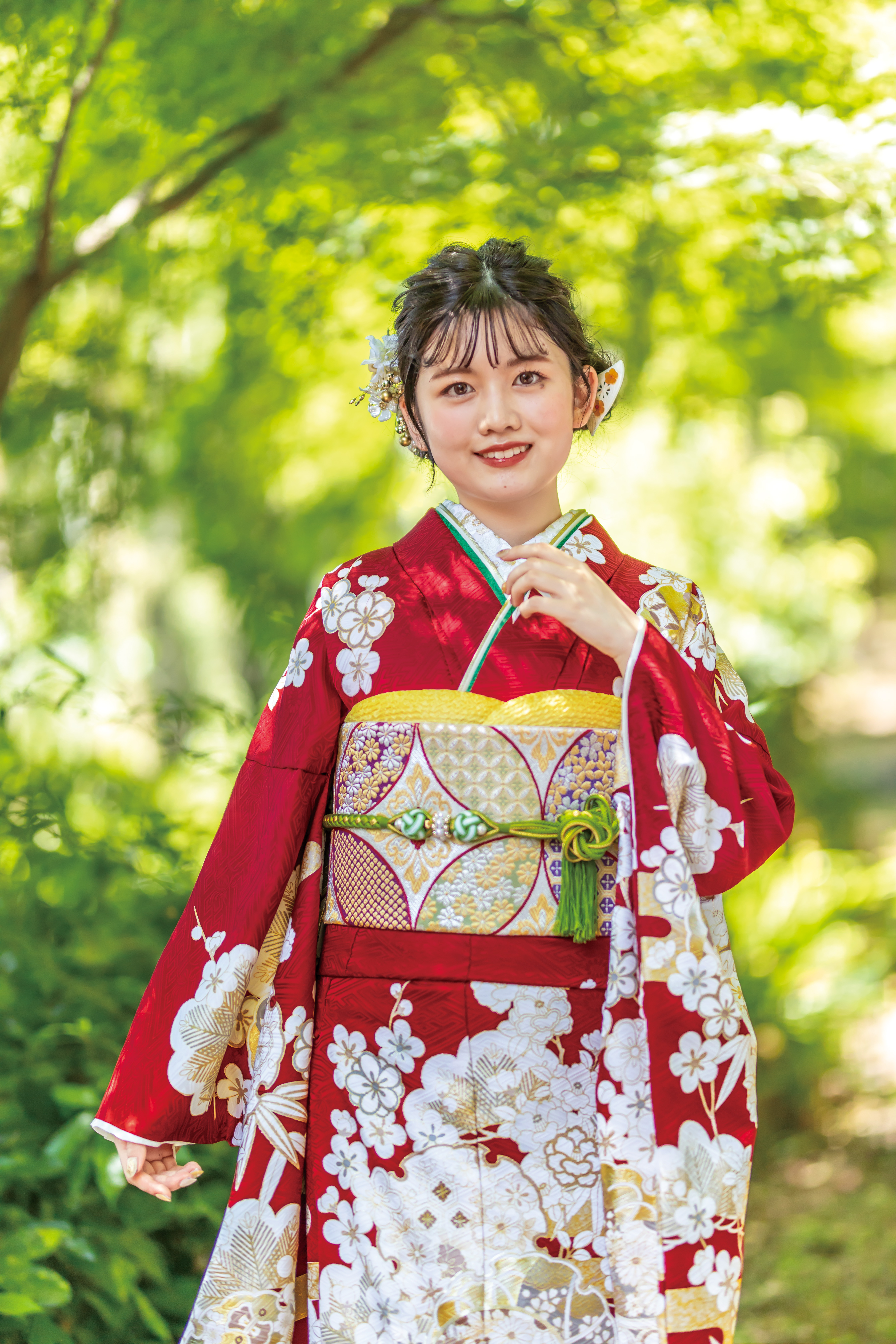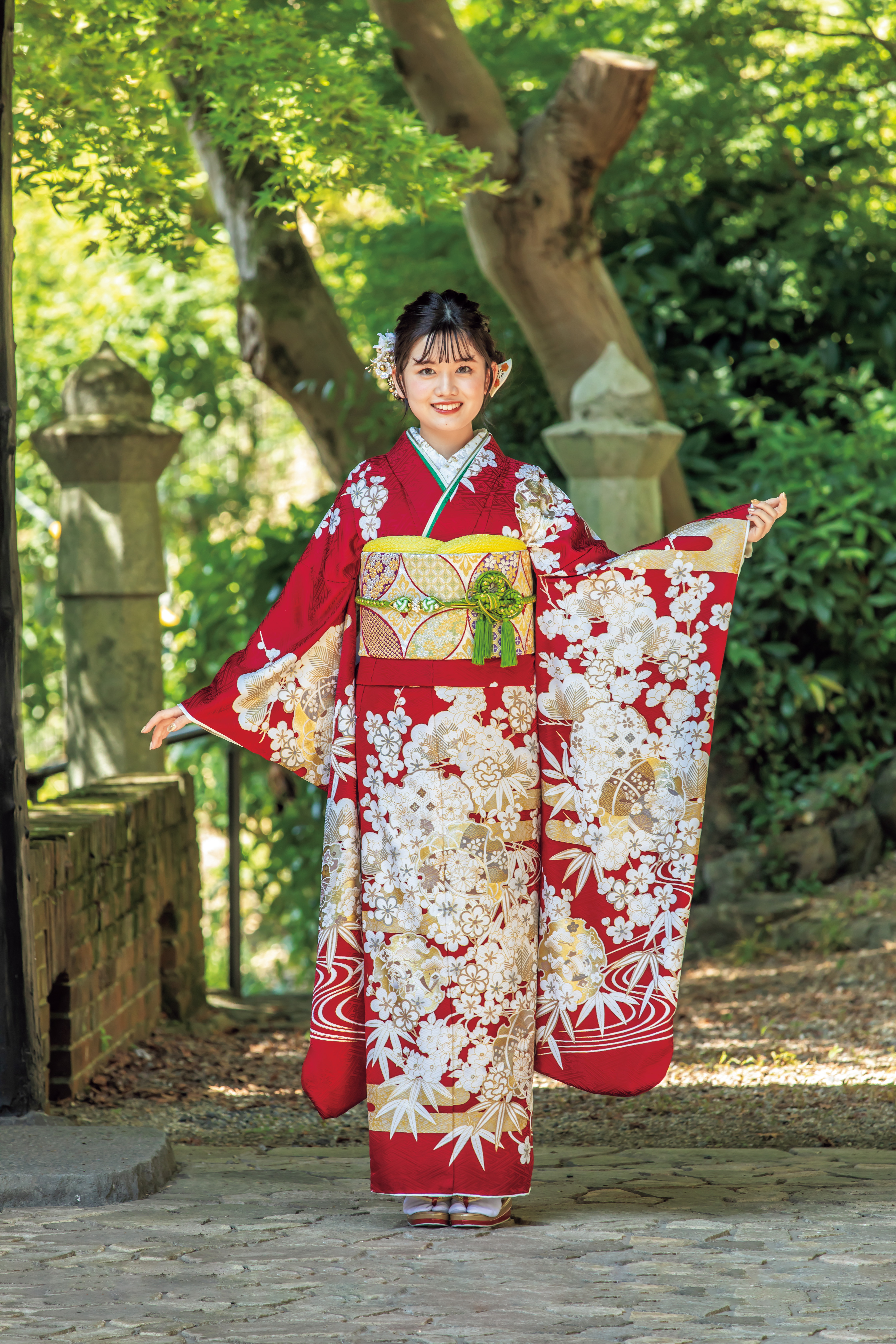 晴れの日にふさわしい主役の赤振袖。 時代を超えて愛される赤い振袖は、色味を抑えた柄にすることで、人と違った晴れ姿を叶えます。