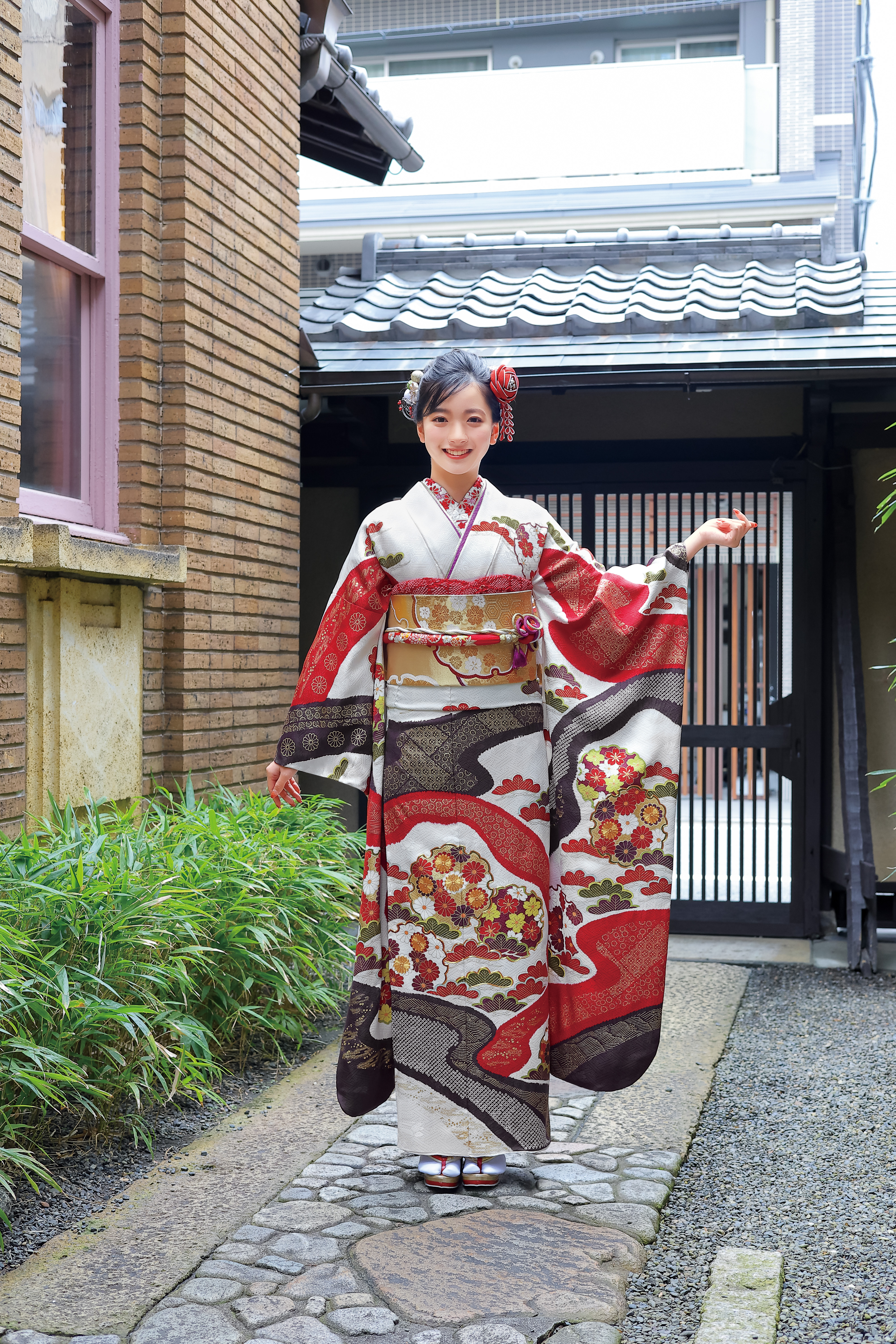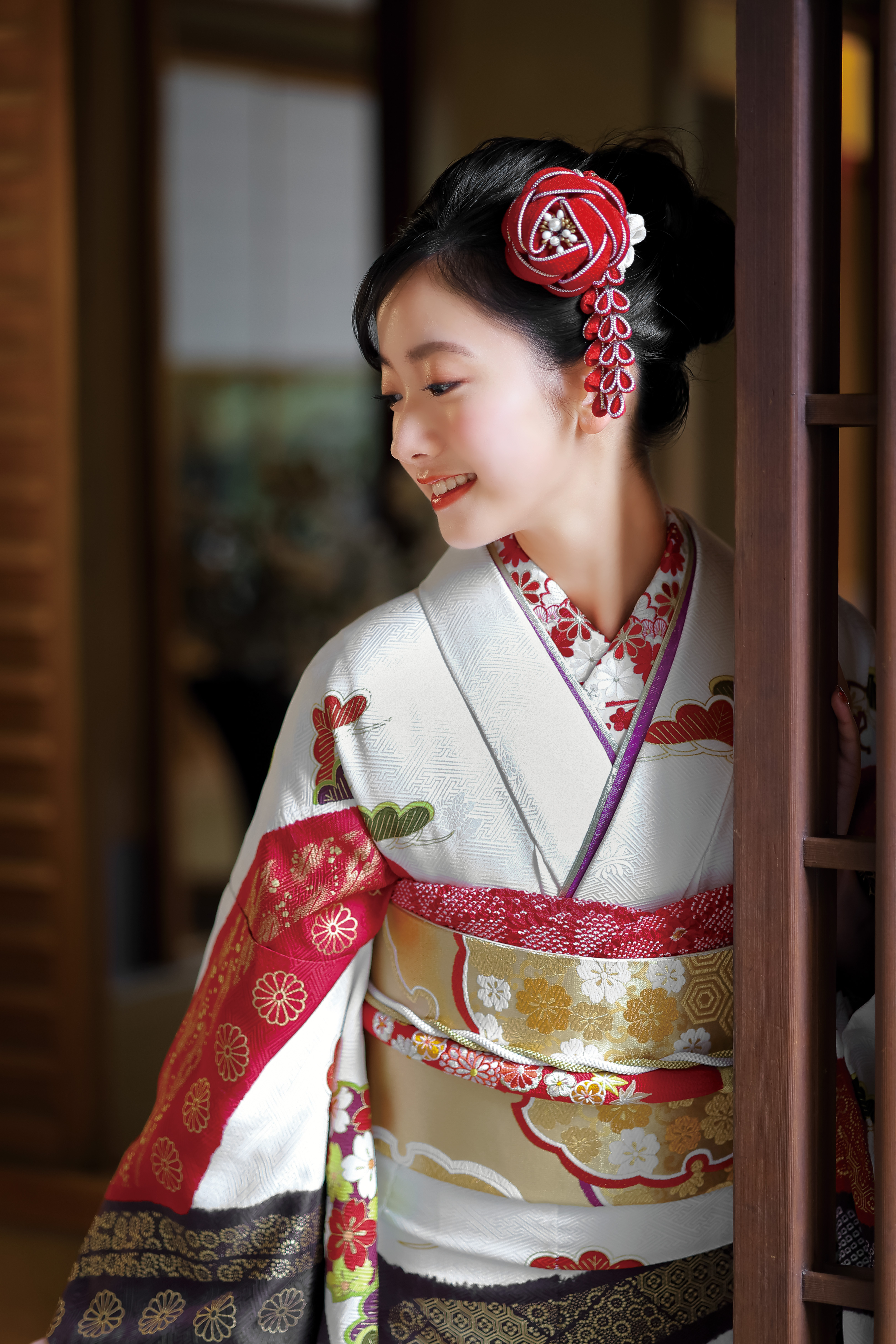 匠が情熱を注いだ桶絞りの技で作り出す味わい深い染めぎわは、唯一無二のあなたの魅力を引き立てる美しさ。 大胆な絞りと繊細な友禅と刺繍が絶妙なバランスの逸品。