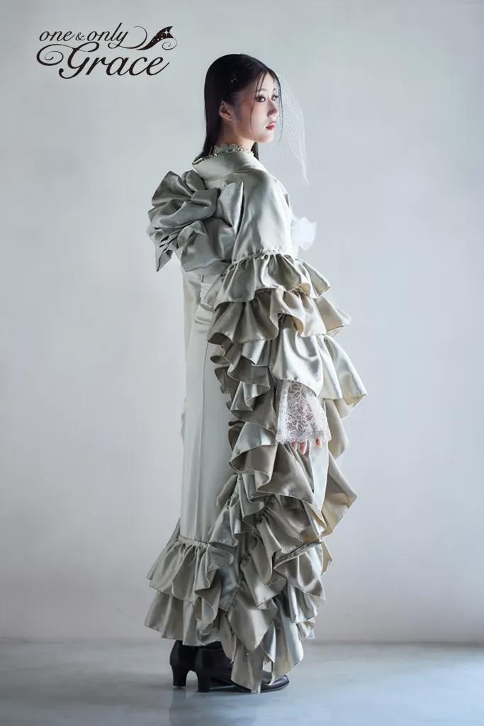 【一蔵&オンディーヌオリジナル振袖】 シャンパンゴールドサテンの輝き。フリル&レースが魅せる、究極の優雅ドレッシー。特別な日を彩る、気品あふれる一着。 《通常サイズ F寸》 ※特殊サイズにつきましては+30,000円追加料金が発生いたします。