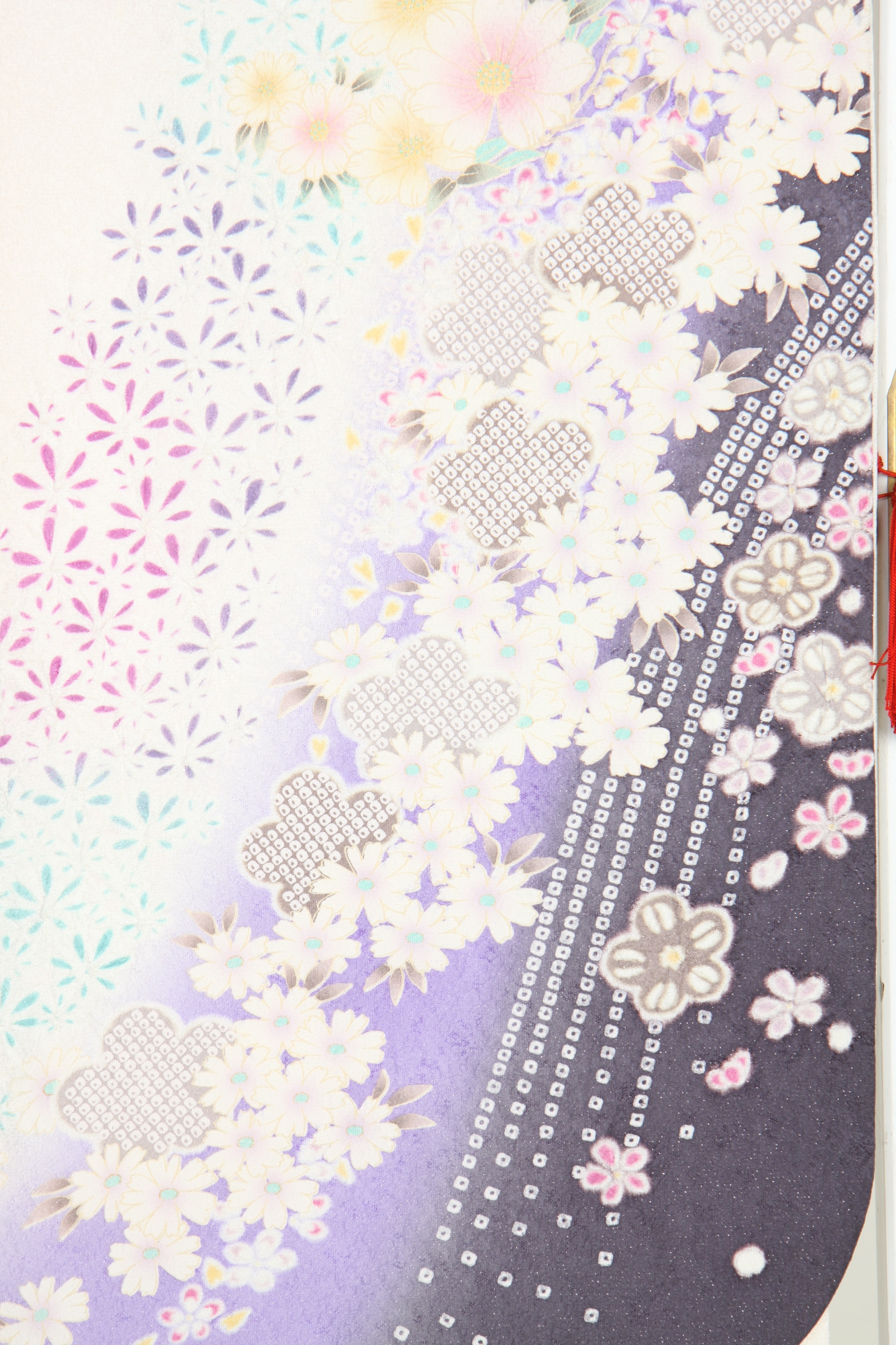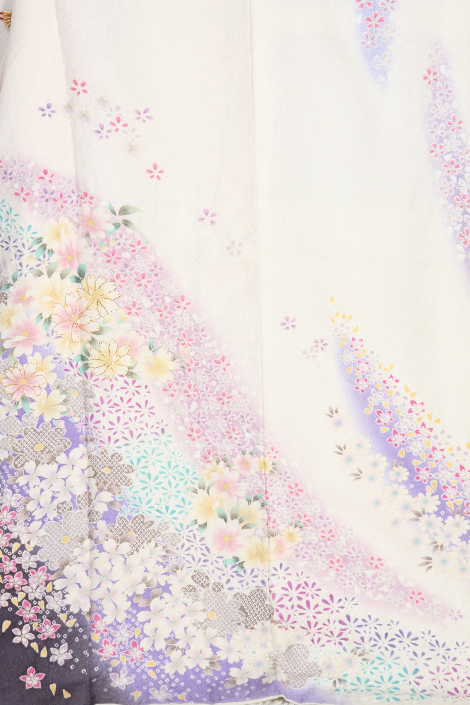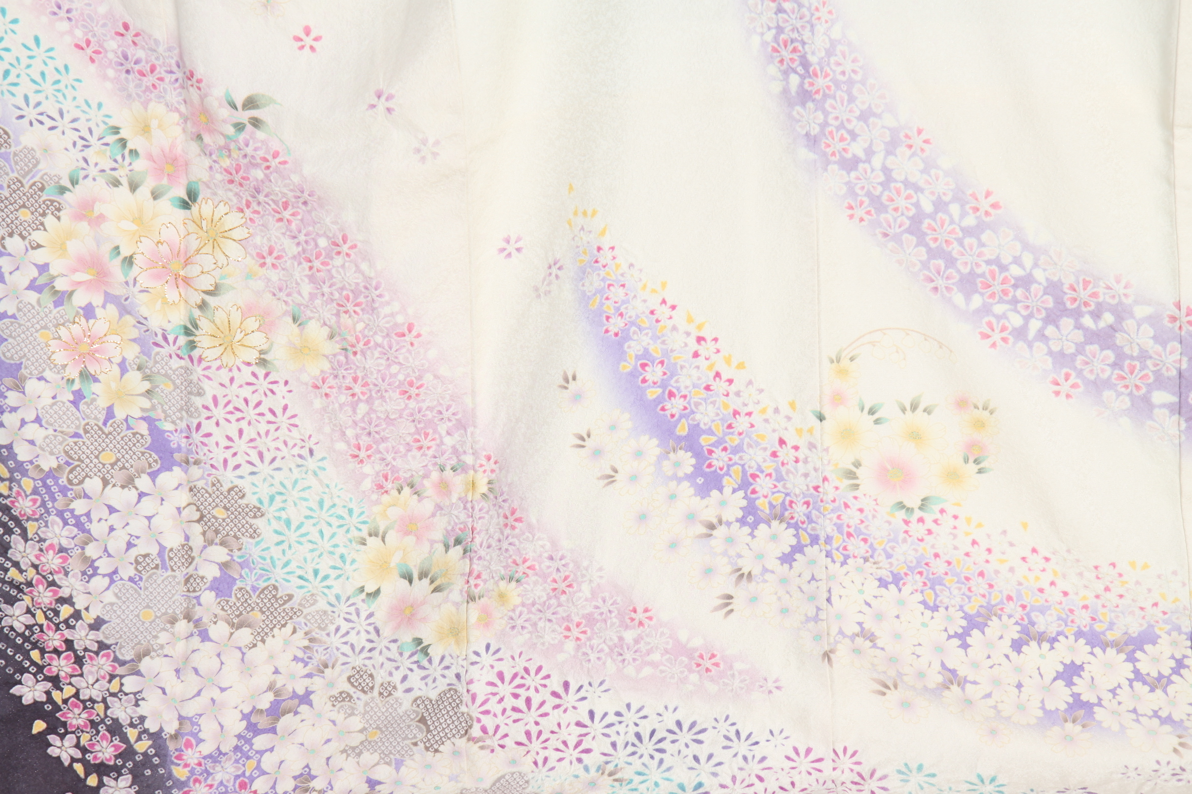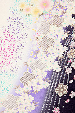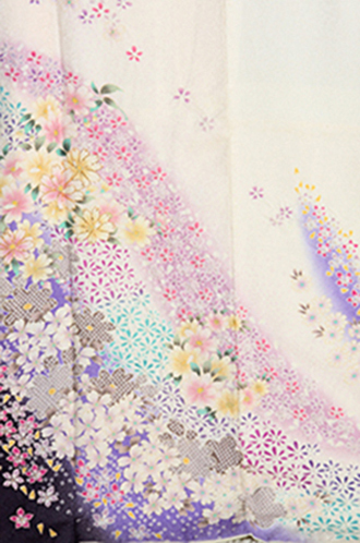 白地に紫の染め分け、極めて小さな小花を流れるように配したお振袖。