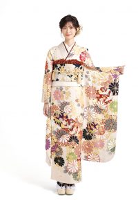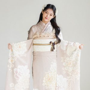 身長が低めの方が全体に大きな花柄の振袖を着ると、柄の主張が強く見えてしまうことがあります。