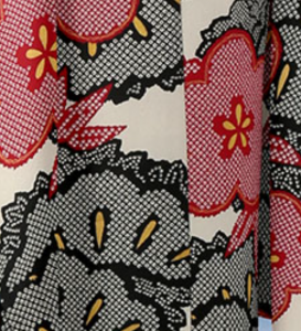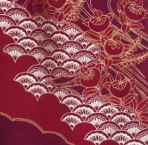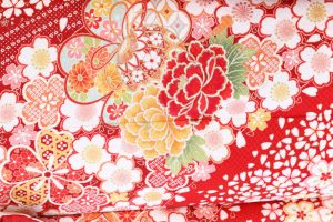 たとえば、赤地に桜や牡丹を描いた古典柄でも、柄を大きく配置して余白を活かすとモダンな印象に変わります。
