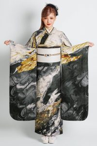 成人式で黒地の振袖を着ると、会場でも一目置かれる存在になれます。