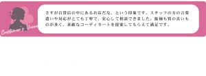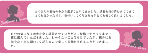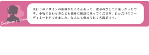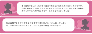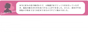 「優柔不断でなかなか決めれなかったのですが、一緒に最後まで可愛くなるように考えてくださりました」