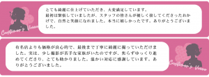 スタッフの距離感が心地よく、リラックスして撮影できたという声も多数。