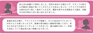ヘアメイクもトレンドを取り入れ、成人式当日の写真がより華やかに残せる工夫が施されています。
