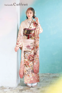 大花に描かれた花に金彩をふんだんに使った振袖は、大人の門出にふさわしい振袖です。