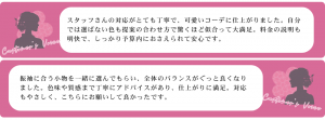 顔映りや雰囲気に合わせて、小物の配色や質感を細かくアドバイス。