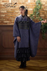 コルセット風の帯や洋風のヘッドドレスを合わせることで、ドーリーで個性的なガーリースタイルが完成します。