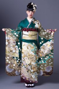 見る角度で印象が変わる、ドラマチックな振袖です。