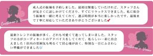 そんな方も、今回ご紹介した店舗なら安心。プロのスタッフが、あなたのなりたいイメージをしっかりと形にしてくれます。