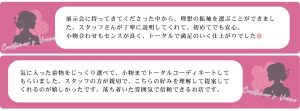 経験豊富なスタッフが似合う色柄やコーディネートを丁寧に提案してくれます。