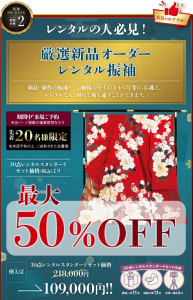 時期によっては、新品の振袖をあなたのサイズに合わせて仕立てる「オーダーレンタル」が最大50%OFFになるキャンペーンを実施しています。