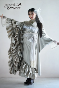 大胆にあしらわれたフリルと繊細なレースが、振袖の枠を超えた究極のドレッシーさを演出します。