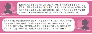 ● 家族写真対応: 記念撮影やお見合い写真としても利用可能。