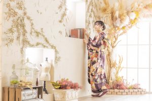 専属のプロチームによる贅沢な撮影会を実施。スタジオセットも振袖のテイストに合わせ、圧倒的な存在感を放つモデルのような1枚を仕上げてくれます。