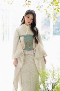 黒を基調とした帯や小物を合わせることで、より一層大人っぽくモードな着こなしに。正統派古典の美しさを保ちつつ、周りとは一線を画す洗練されたスタイルを目指すお嬢様にふさわしい一着です。