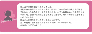 ブライダルの実績: 花嫁衣装で培った高い品質とサポート力で、安心して成人式の準備を任せられます。