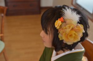 ドレスはもちろん、振袖にもボリュームある生花の髪飾りはピッタリです。