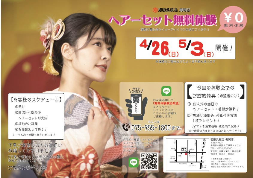 『ヘアセット無料体験』ご予約受付中!※予約が埋まってきておりますので、
