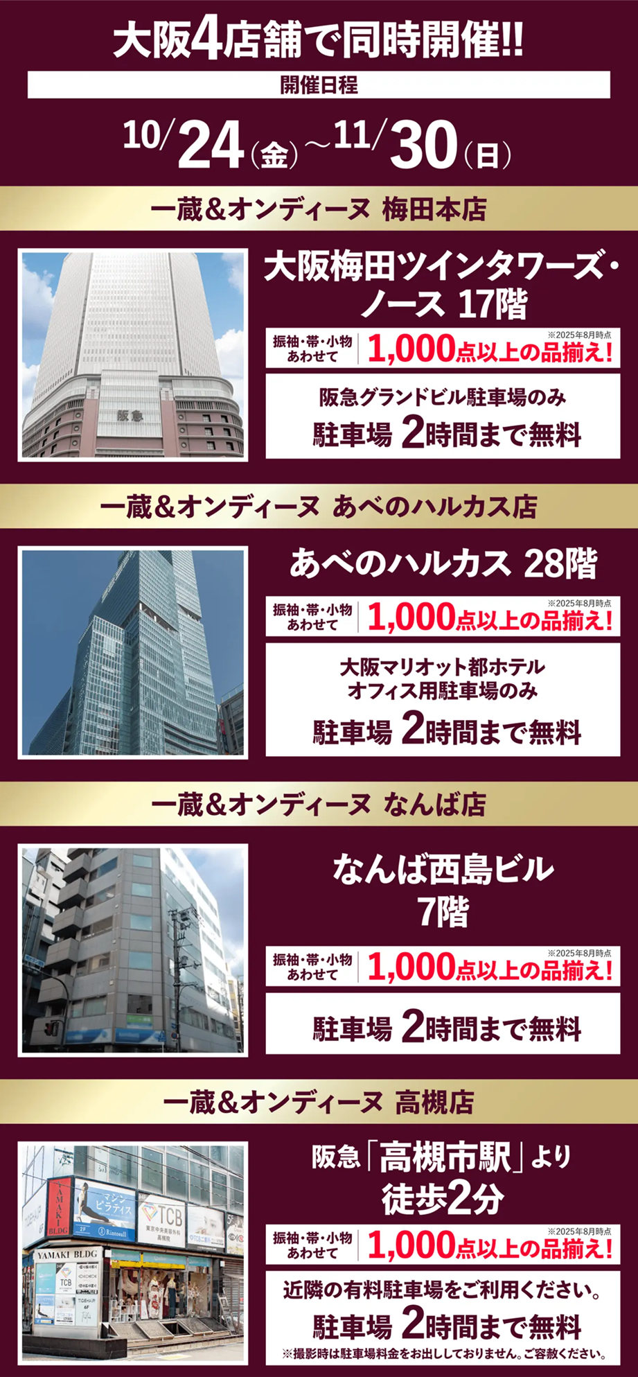 | 開催時間 | 開催日時は店舗によって異なります。 |