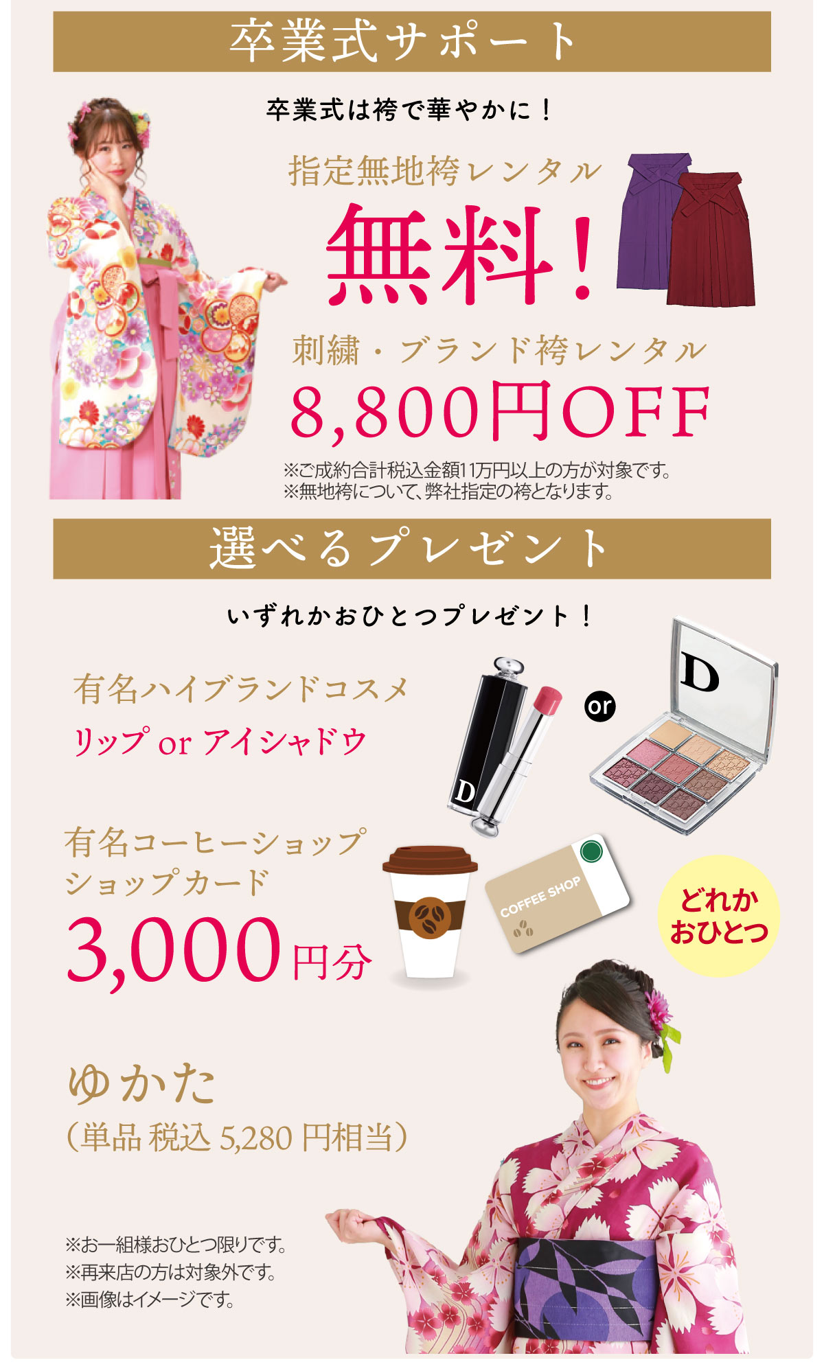 プロスタッフによる着付け&ヘアメイクが完全無料♪