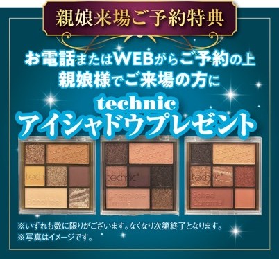 この期間にご予約の上親娘様でご来場いただくとtechnic7色アイシャドウプレゼント!