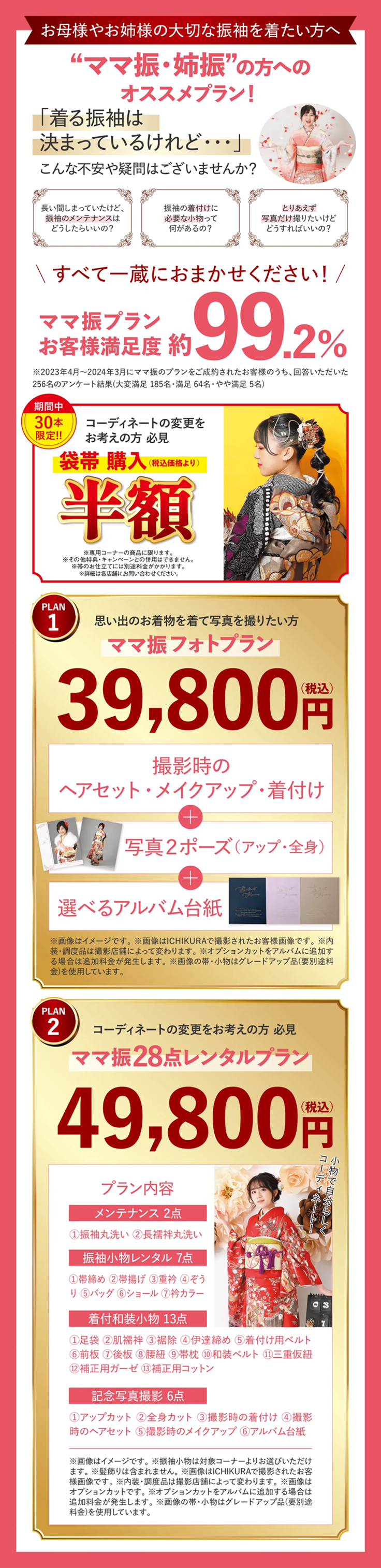 振袖・帯・小物も含め、商品総保有数約10万点の圧倒的商品量と、