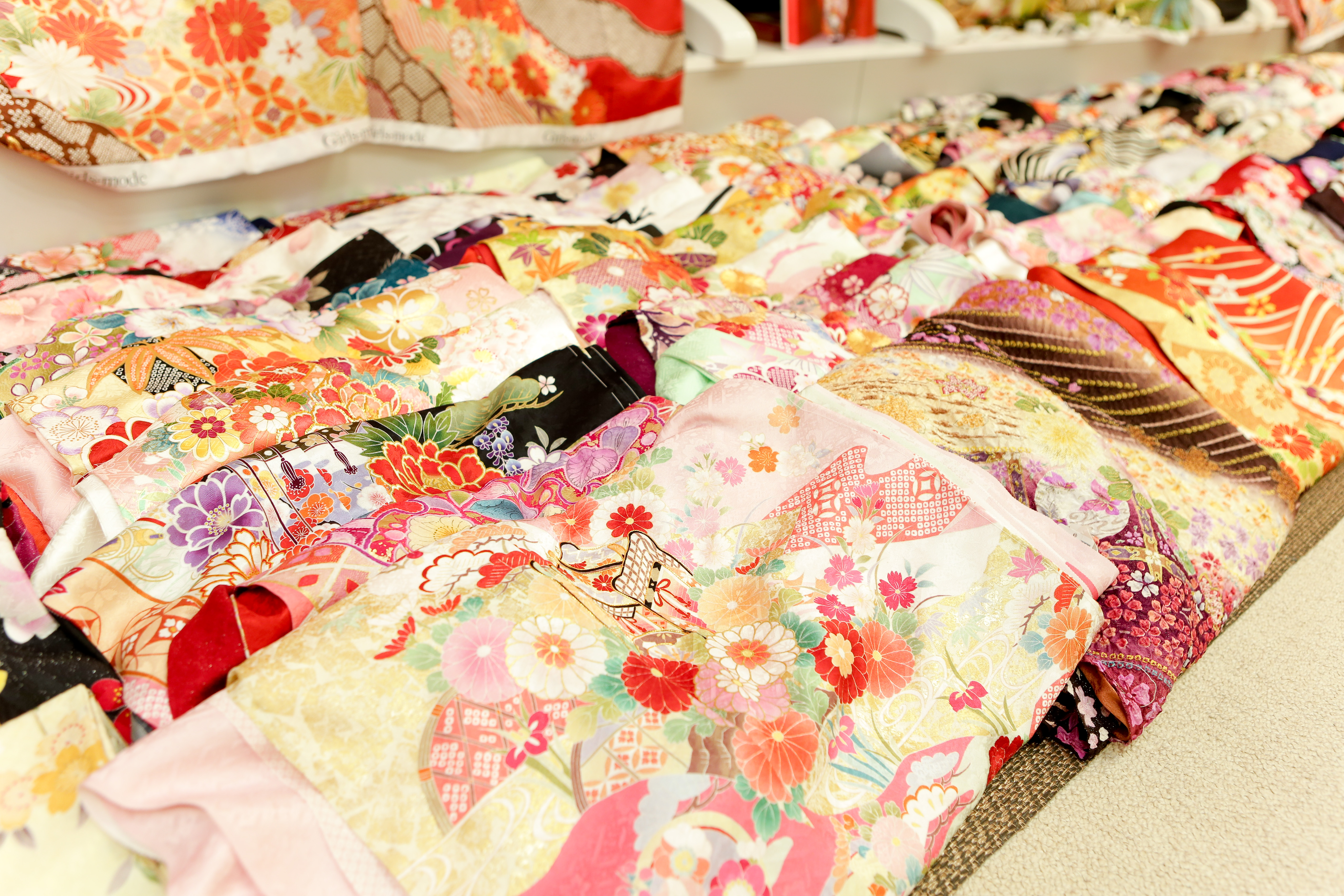 一蔵では伝統的な古典柄から一蔵にしかないオリジナルデザイン振袖まで、数多くの柄、テイスト、色を取り揃えております。 また振袖・帯・小物を合わせ、店内には1000点以上ございますので、きっとお気に入りの一着が見つかるはずです。