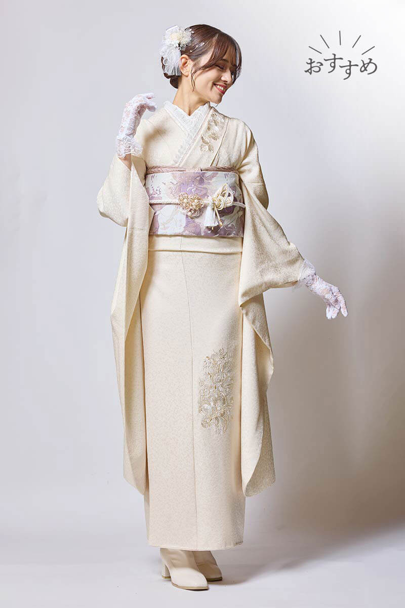 【MK-1503】クリーム色の上品な刺繍が映える華やか振袖