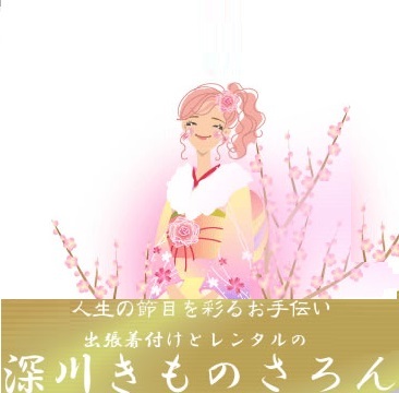 こんにちは。着物の出張着付け&レンタルの「深川きものさろん」です。 当さろんは、日本の伝統美である着物をもっと気軽にもっと美しく多くの皆さんに装っていただくために生まれたさろんです。