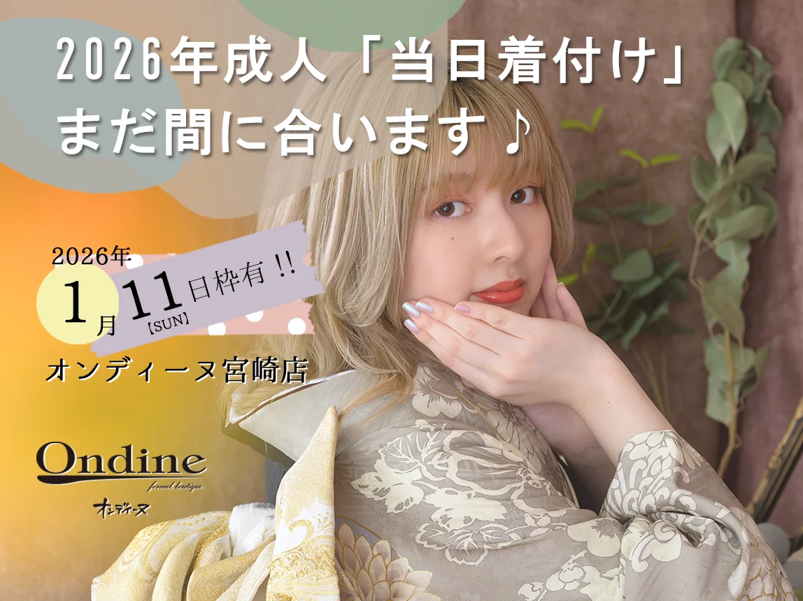 2026年(令和8年)1月ご成人の方の 当日着付けのブースを追加いたしました★ 残り数枠ですが4時代でのご案内も可能です。 お早めにご連絡ください。 ※予告なく枠がなくなる可能性がございます。 ・どんな振袖が似合うかわからない ・とりあえず着てみたい ・小物だけ見たい ・振袖を持ち込みたい などまずはお気軽にご相談ください。 前撮り撮影にも力を入れています。 みなさまにご満足いただけるよう、スタッフ一同、心よりお待ちいたしております。